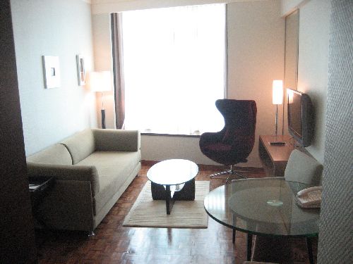 Sitting room with pull out foam cushion bed.